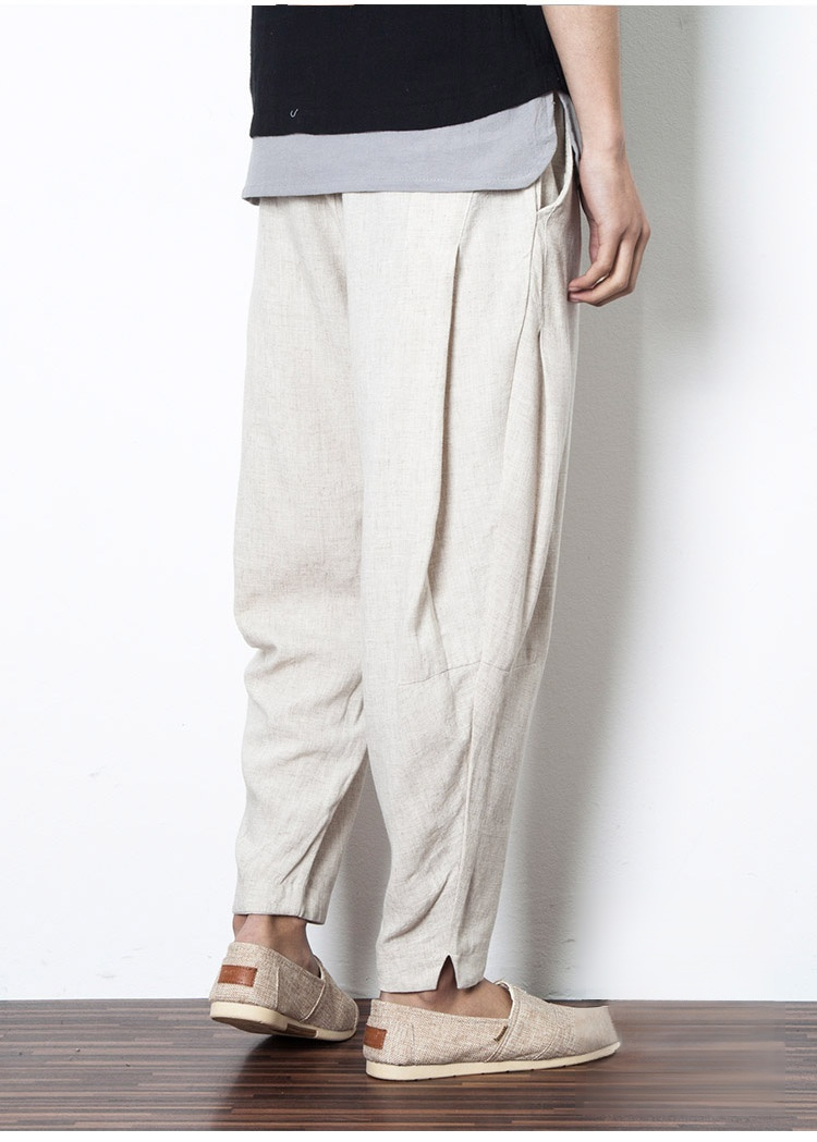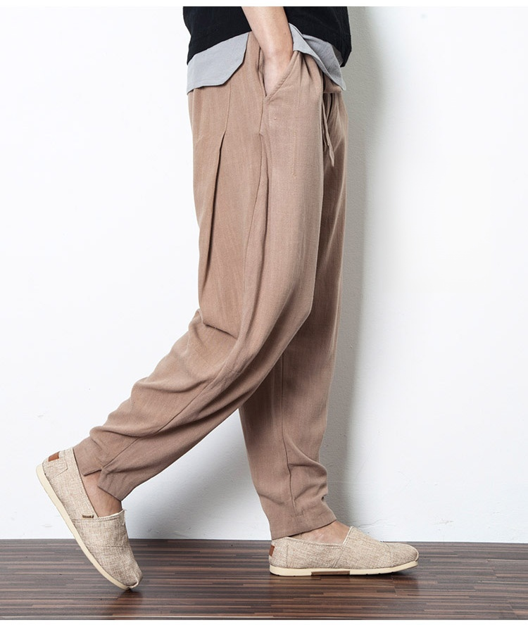 【リネンワイドパンツ】動きやすい 通気  肌に馴染みしやすい  しなやな光沢感